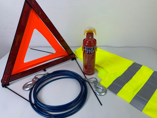 Pack Securité de voiture (extincteur, gilet, panneau, cable dépannage ) / مجموعة السلامة للسيارة (مطفأة حريق، سترة، لوحة, كابل )
